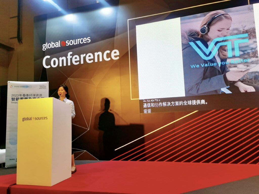 VT的声学介绍和VT的全球战略部署。”We value you better”的口号和VT品牌给买家留